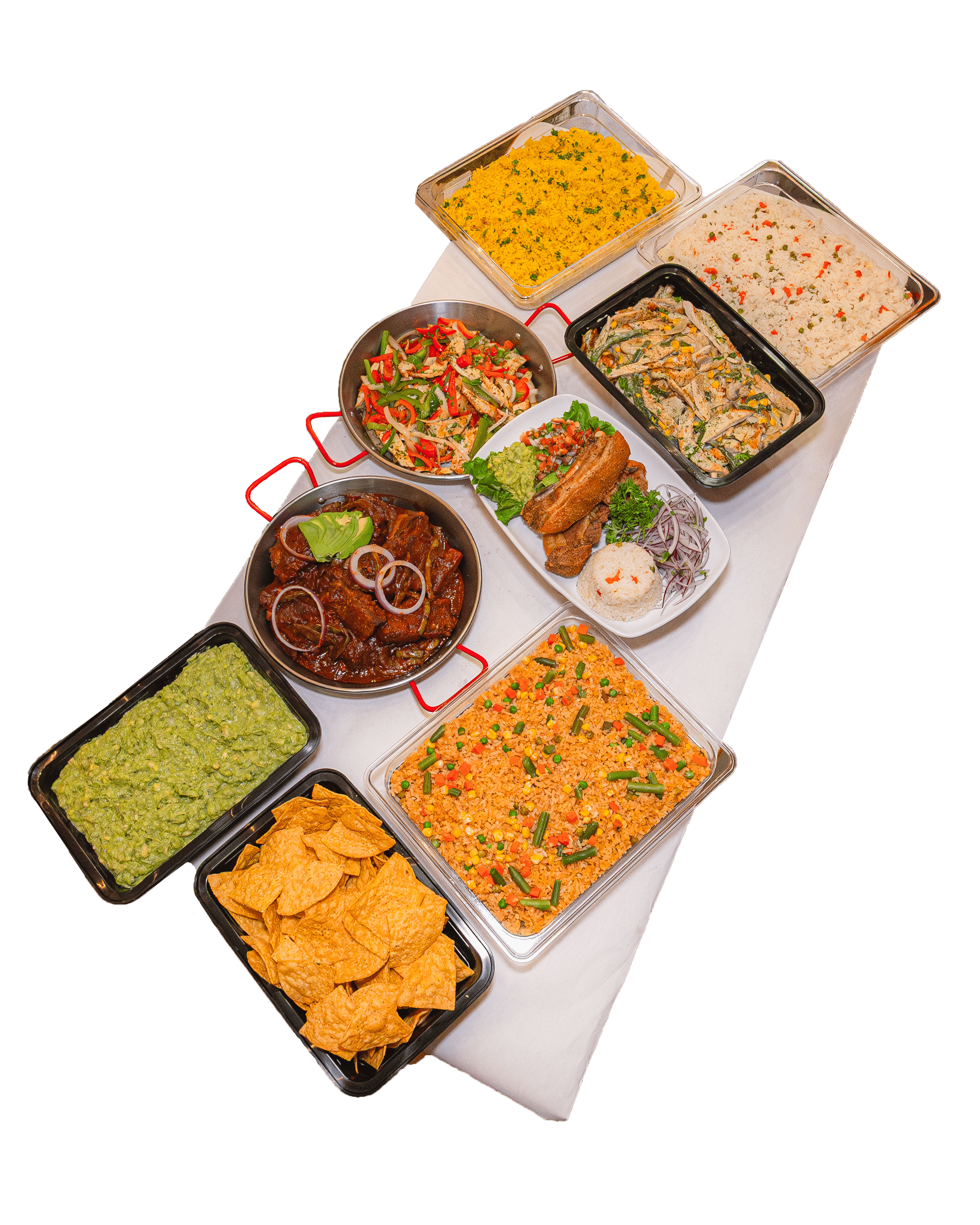 Montajes, bandejas y platos para grupos de 10 a 500 personas.
